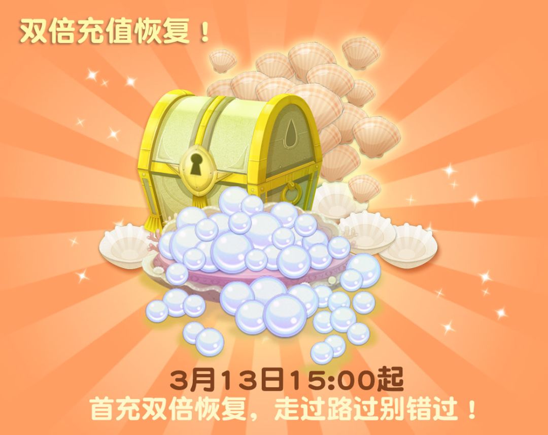 活动详情:3月13日15:00起,首充双倍全恢复,实惠多多等你来。