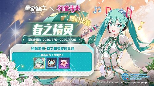 本次版本更新除了给各位骑士大人,带来了初音未来的“春之精灵”新皮肤,同样还有各种专属活动。3月份,雪韵公主将会全新上线,各位小伙伴们可以与之缔结契约啦~