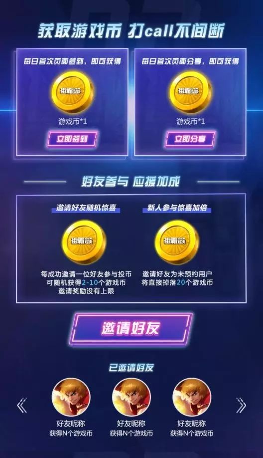 什么?嫌游戏币不够?还想疯狂打CALL?好的,满足你!现在邀请好友参与投币,就有2-10个游戏币可领取。邀请未预约的好友,更可一次获得20个游戏币,投币活动一步到位!!!大家是不是已经有了目标组合,
