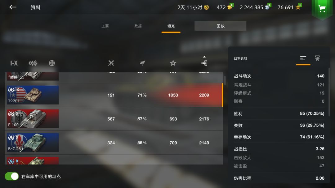 我能说的基本就是这些,别人也可以补充,说到底意识还是要靠自己,你们还想要看什么车可以跟我说(我毕业了E100,62A,查查,蟋蟀,谢里登出了没买,白兔以及SU系八级以下的基本所有车还有各种收藏金币车单独说就好)