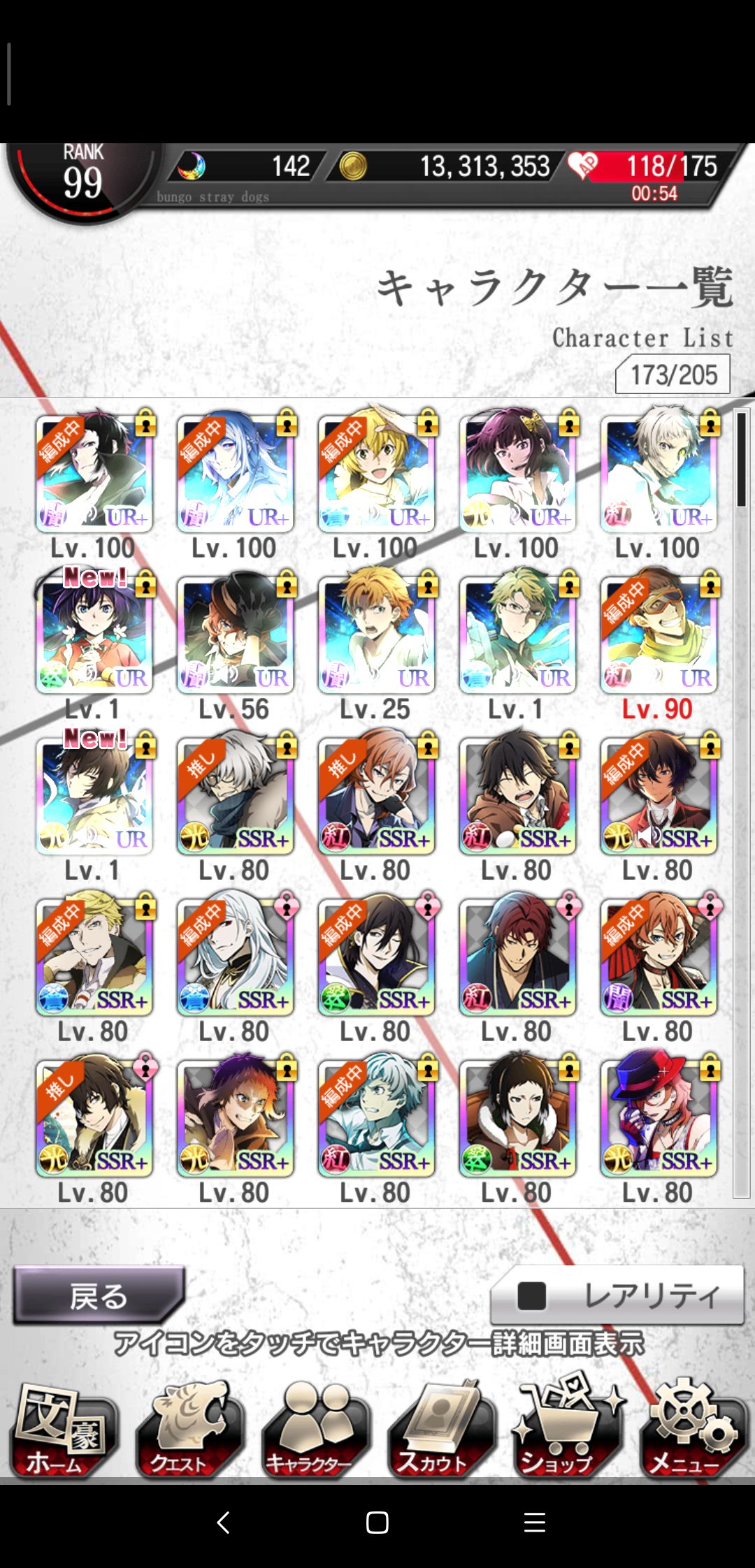 首先,关于抽卡,这游戏ssr绝对不缺(如果国服不魔改或者采用日服前期没保底的模式),下面是我去年圣诞开始玩的日服号,到现在也有不少ssr了,自建号0氪金,所以不用太担心自己太非或者抽不到ssr弃坑