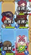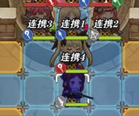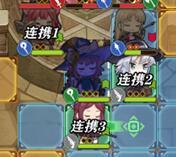此图中,因为迪克是近战,所以他就在最低的连携位,也就是连携1。剩下三个都是远程,因为密丝缇在下侧,所以她的连携位最高,也就是连携4。玛菲和菲卡在同一行且玛菲在菲卡的右侧,所以玛菲的连携位更低。