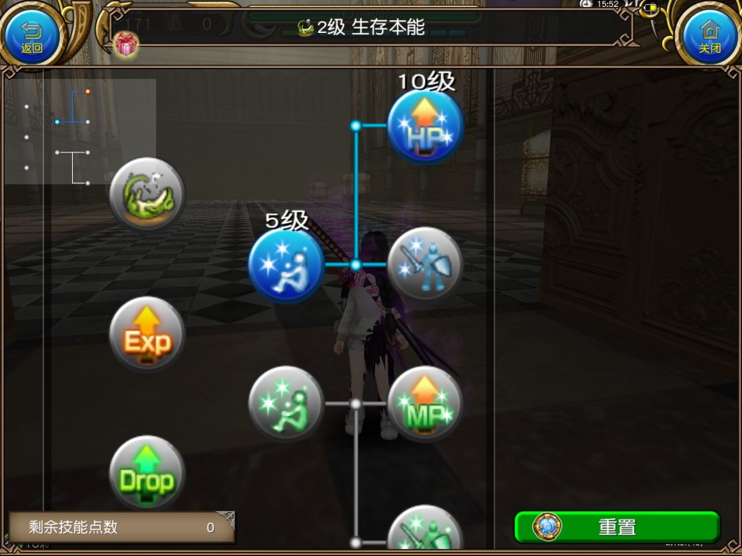 萌新阶段装备都不怎么好,蓝量突破和生命值突破要毫不犹豫点满。装死这个技能不要点,不要给自己后路。 技能点消耗 30。