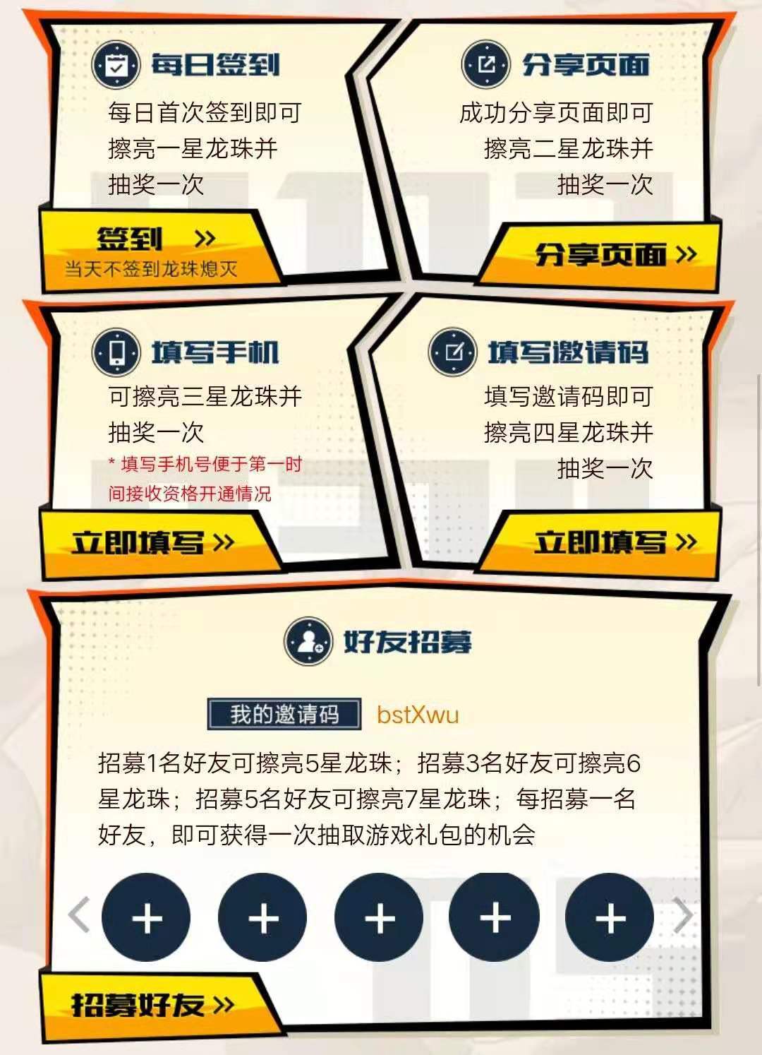任务五:招募1名好友可擦亮5星龙珠;招募3名好友可擦亮6星龙珠;招募5名好友可擦亮7星龙珠;每招募一名好友,即可获得一次抽取游戏礼包的机会。