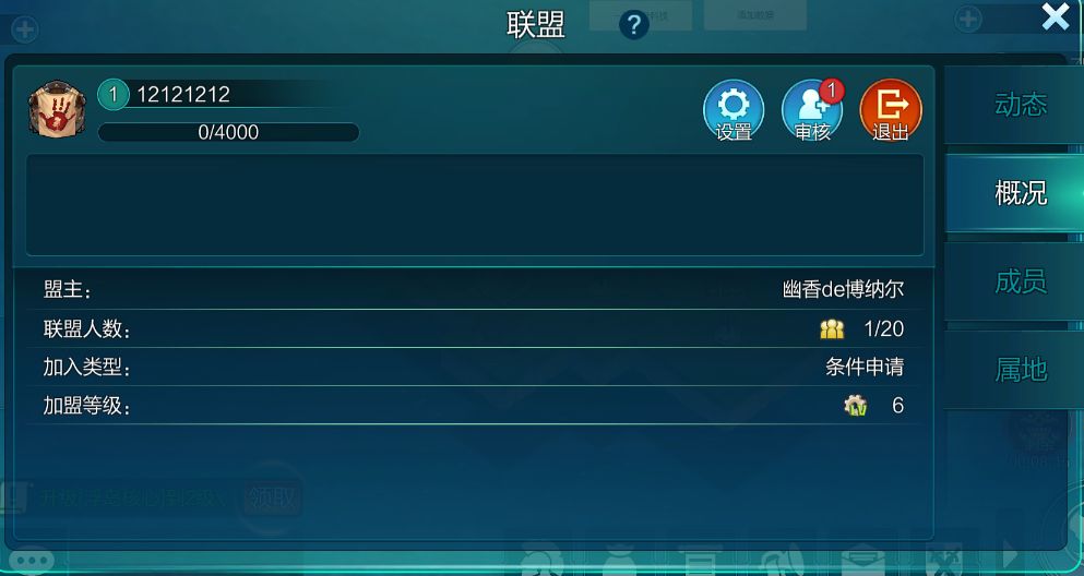 设置按钮:里面可以更换联盟标志,联盟公告,加入的权限。