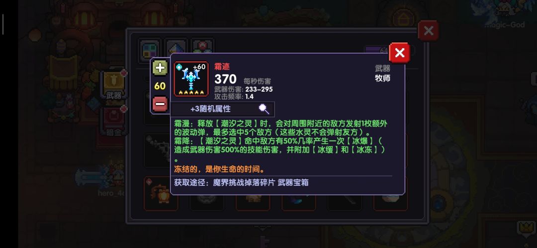首先,核心肯定是我们的霜迹,也就是牧师冰魔女武器,水牧伤害有几乎一半来自冰武5星特效的冰爆,所以,玩家只需要优先养成这把武器就行,剩下两个武器位子,看情况自行选择,用我萌新贴教过的东西就行。