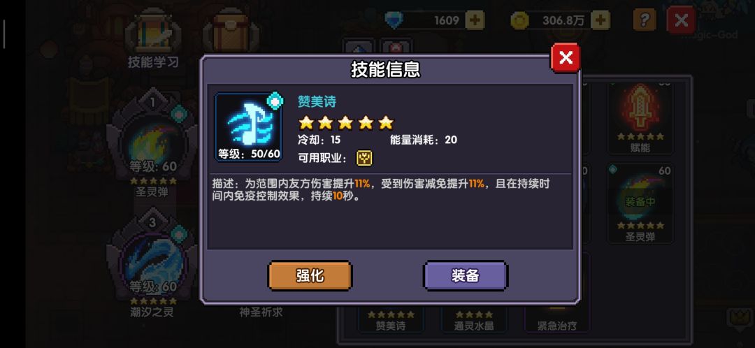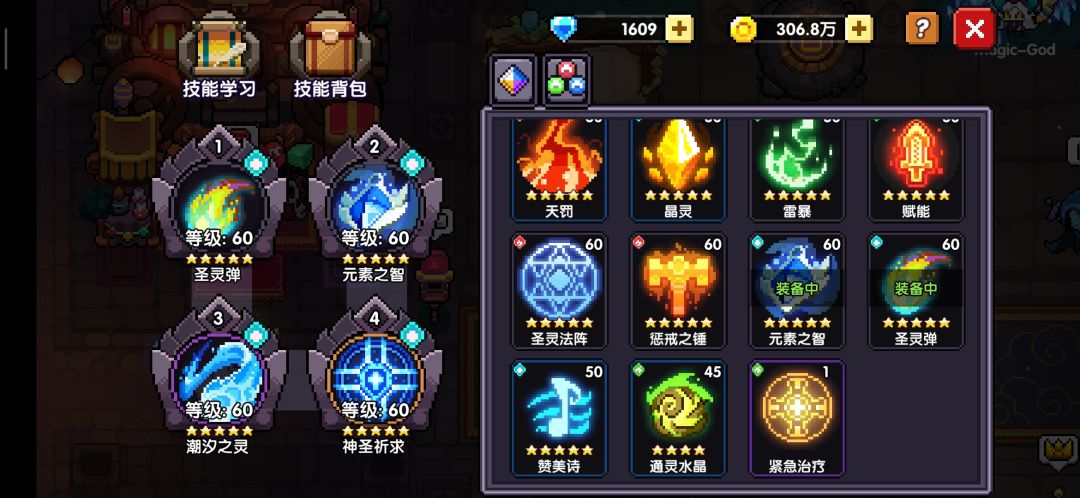 技能是,圣灵弹,潮汐,祈求(等级高不高无所谓,高了最好)元素之智/晶灵/赞美诗。