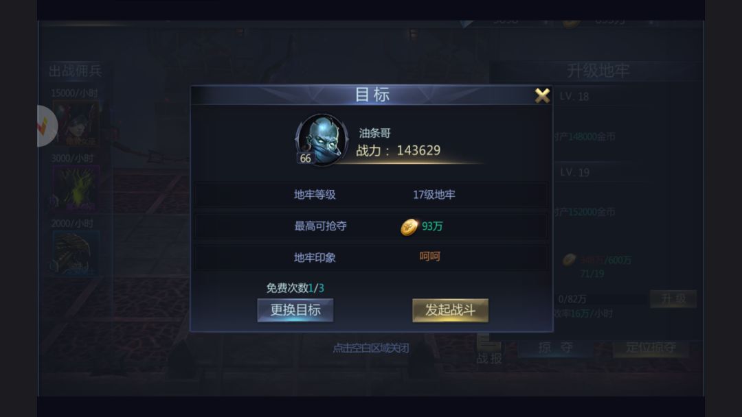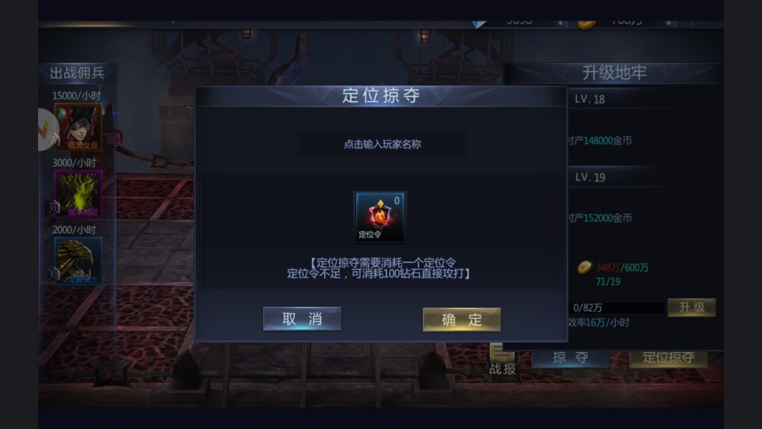 行走江湖难免结下梁子,如果能去自己仇人那里掠夺一番该多解气啊。暗影金矿可以实现你这个愿望。在定点掠夺中,输入目标玩家的ID即可直接进入对方地牢,不用在茫茫匹配人海中撞运气。敢惹我,今晚就把你的金矿搬空!