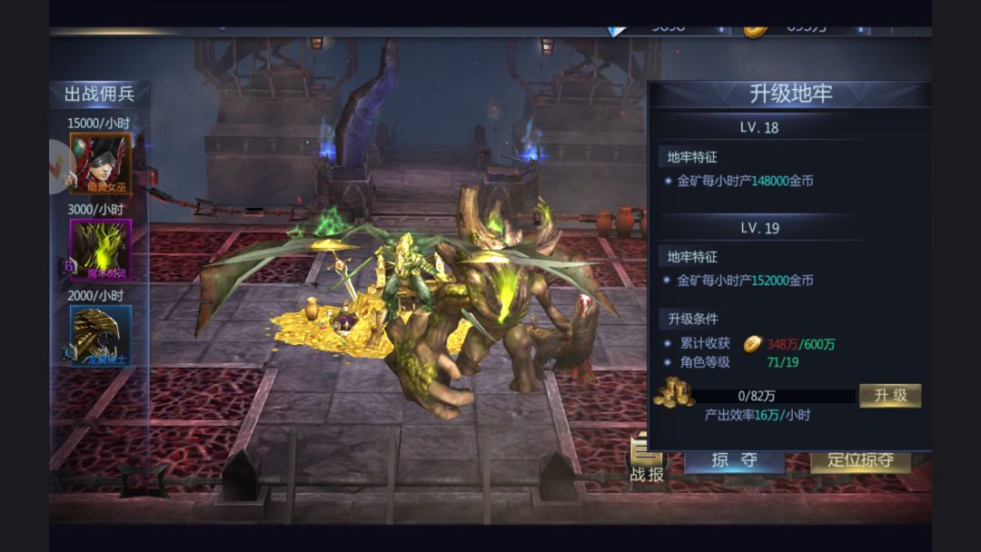 除了自家金矿出产的黄金,你还可以每天去其他人的金矿那里转转。如果主人没有及时收获那些金币,你也就不要客气,统统笑纳了吧,只要你能打得过主人家的佣兵。佣兵的作用就在这里,想要掠夺宝藏,先过守宝人这一关。