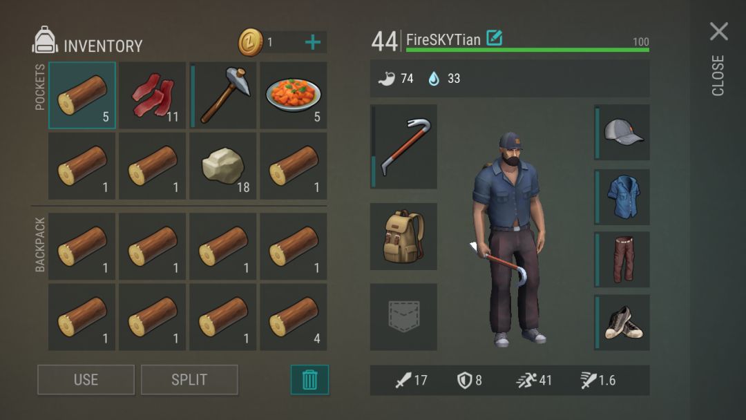 2.将你所要采集的特定资源,用SPLIT键不断等分,占满背包格子