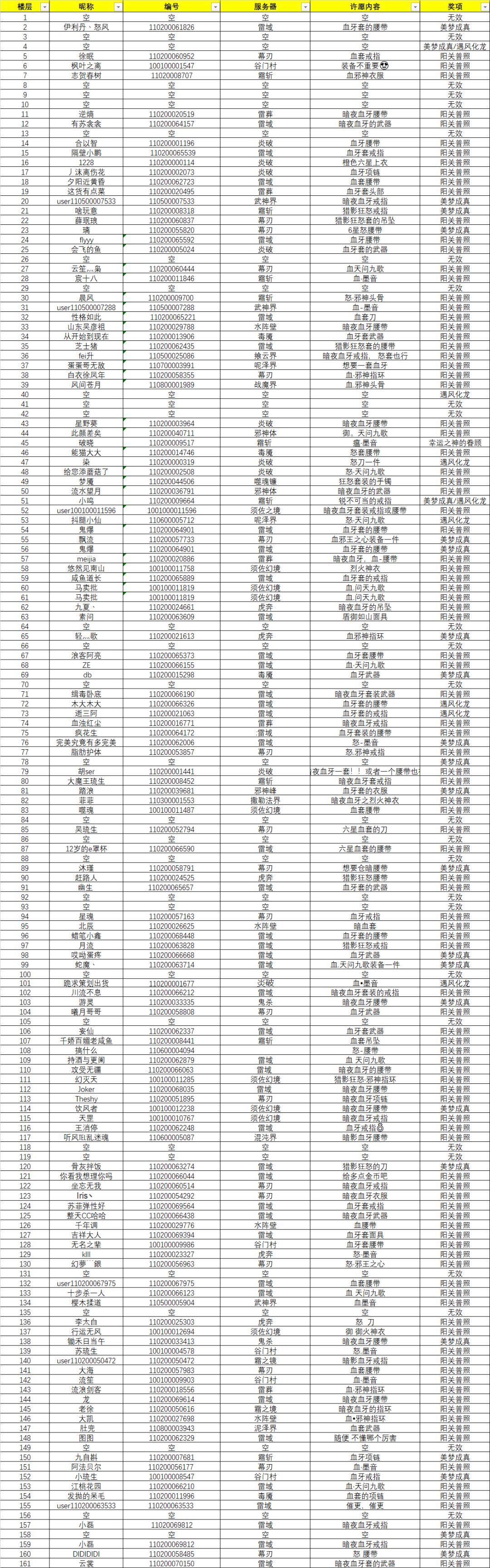 详见名单附图(奖项为:美梦成真)