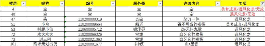 遇风化龙名单公示: