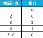 2、 玩家每场都将获得积分,积分数根据当局排名依次降低;具体如下: