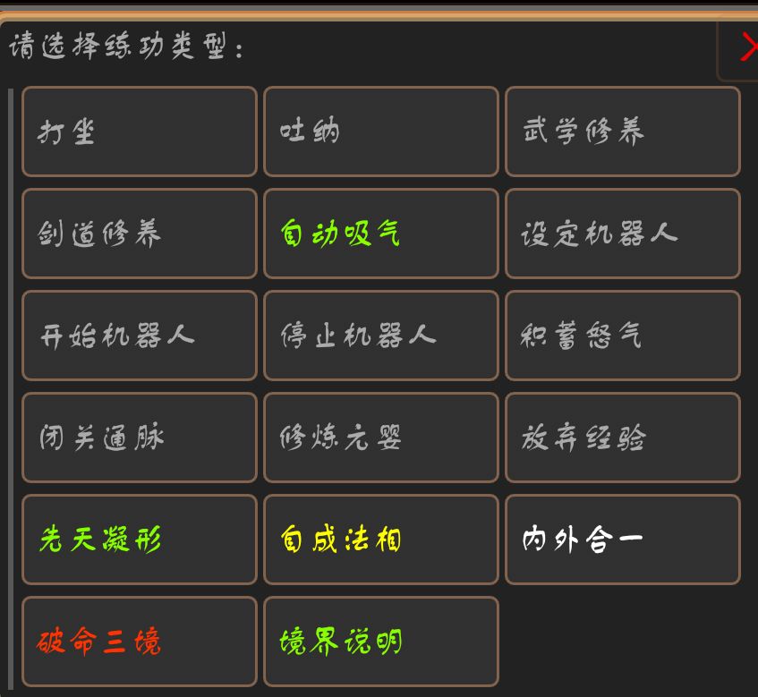 说白了就是对输入的指令代码按1秒1次的频率循环运行。比如输入e;w后,e代表向东运动(east),w代表向西(west)。输入以后你将会往东走一步接着往西,然后往东,接着往西……如此循环,反复横跳。关于机器人的格式,每个指令用英文;隔开,两个指令之间不要有空格,循环最多兼容5条指令。如何设置机器人点击技能相关——日常练功。