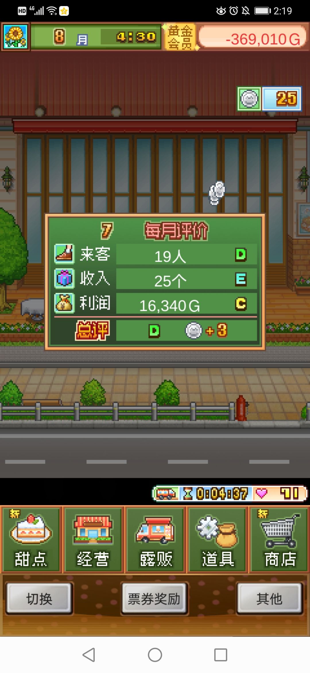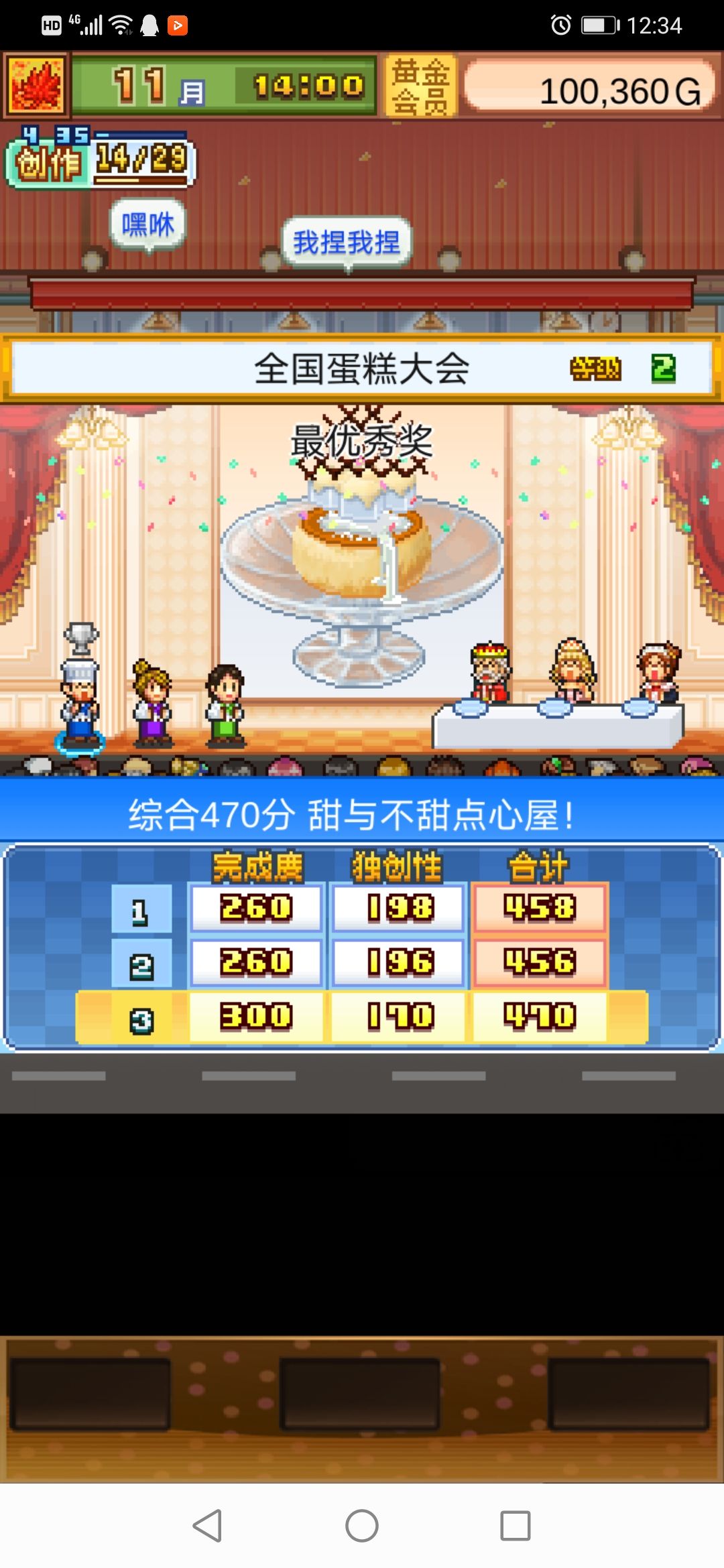 一开始拿钱买了太多蛋糕基底,没怎么做活动,比赛倒是打过了不少。然后就一点点去了高级产地,员工也多了,但是甜品等级低。于是开始入不敷出…像滚雪球一样赤字越来越多。跑到论坛看到有大佬说升级打泡鲜奶提高甜品等级很有效。然后又看到另外一个大佬说挂机加行商能挽回亏损。于是我挂机加行商一晚上,硬币以升级打泡鲜奶为主,顺便稍微升了下果冻等级。打泡鲜奶等级上去了,不管做什么甜品来一杯奶,甜品等级提升,于是甜品销售量提升了!终于渐渐扭亏为盈,于是有了钱赶紧继续打比赛,做经营活动,钱攒多了之后再去买需要的蛋糕基底做蛋糕。树桩(干)蛋糕(又叫年轮蛋糕)和巨型芭菲就是我的天使!扭亏为盈全靠树桩蛋糕!在树桩蛋糕的流行月份货架全部上架树桩蛋糕!大赚一笔!萨赫蛋糕和歪罗蛋糕(我叫它方块蛋糕)也很赚钱!高等级的瑞士卷和蜂蜜奶香蛋糕(有奶酪才能做)很畅销!哭泣!我前期没注意把南瓜商会买的大布丁基底和萨赫蛋糕基底都用掉了😭,不再进货了呜呜呜!导致我现在没法做开罗蛋糕,南瓜商会也没有歪罗蛋糕进货了!