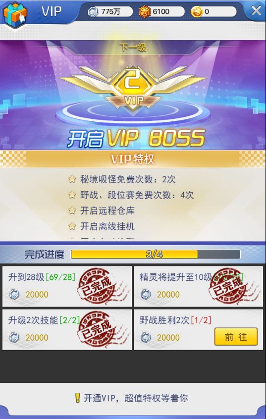 在玩家进入游戏开始,完成对应的任务,就可以开启VIP任务啦。