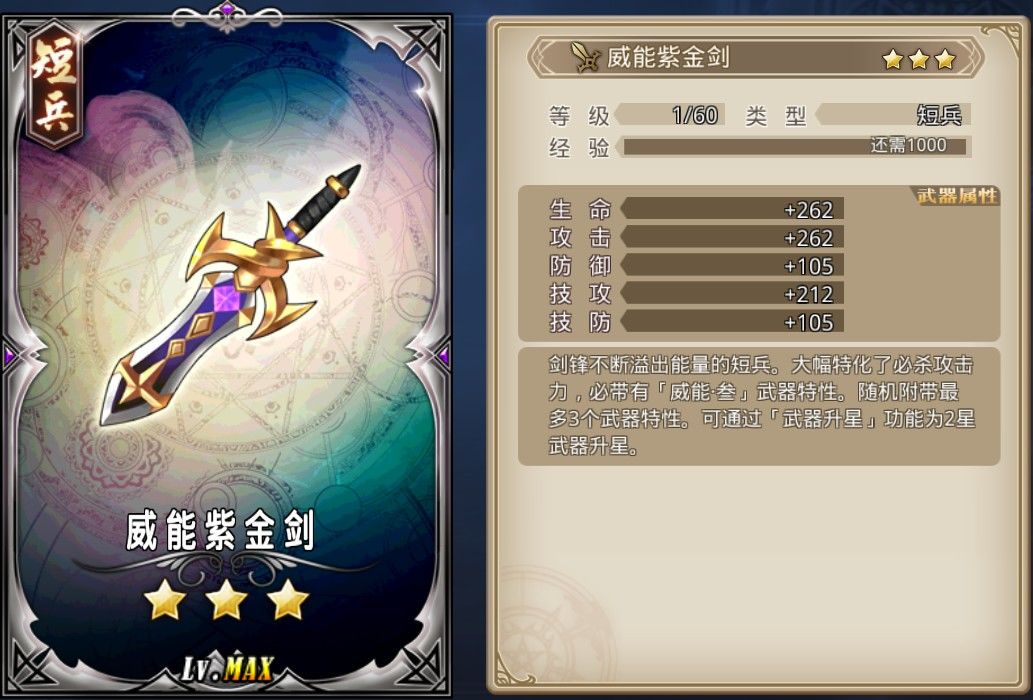 活动内容:《限时兵器会-剑》活动关卡重新开放。参与活动可获得3星强力短兵武器卡:威能紫金剑。