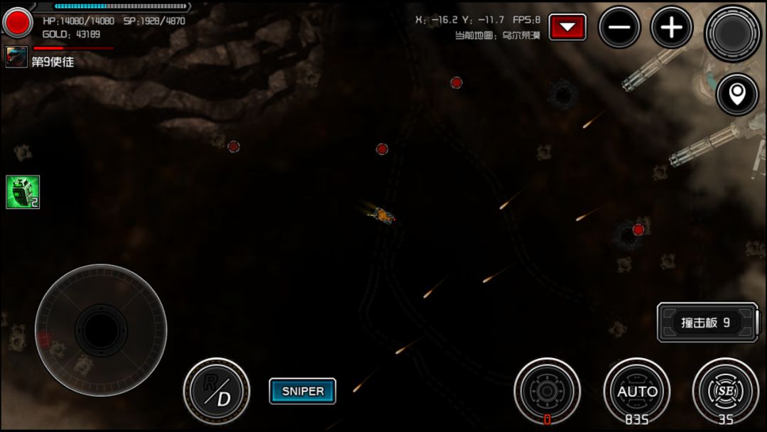 观察弹道确定第九使徒位置,左上出现血条则boss正在受击。