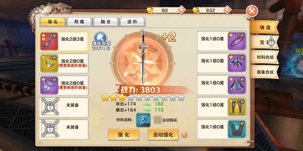 “工欲善其事必先利其器”,想要挑战高级魔物,当然不能少了品质优良的装备。在《神魔幻想》中,玩家可以对装备进行强化、附魔、融合和进阶打造各种属性加成的套装,还可以通过宝石镶嵌对单个部位的装备进行进一步提升和属性调整,自由锻造装备,让套装与角色属性更契合。