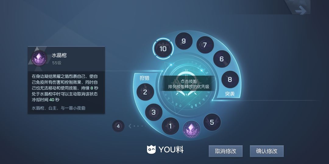 高魔攻高血量的基础上,配合虚空和水晶棺两个强力保命技能保证,可以在高难度的副本中或者pvp团战保持较高的持续作战能力,不会出现被boss一个技能秒杀的情况,技能基础连招如图,必要时需要自行随机应变。