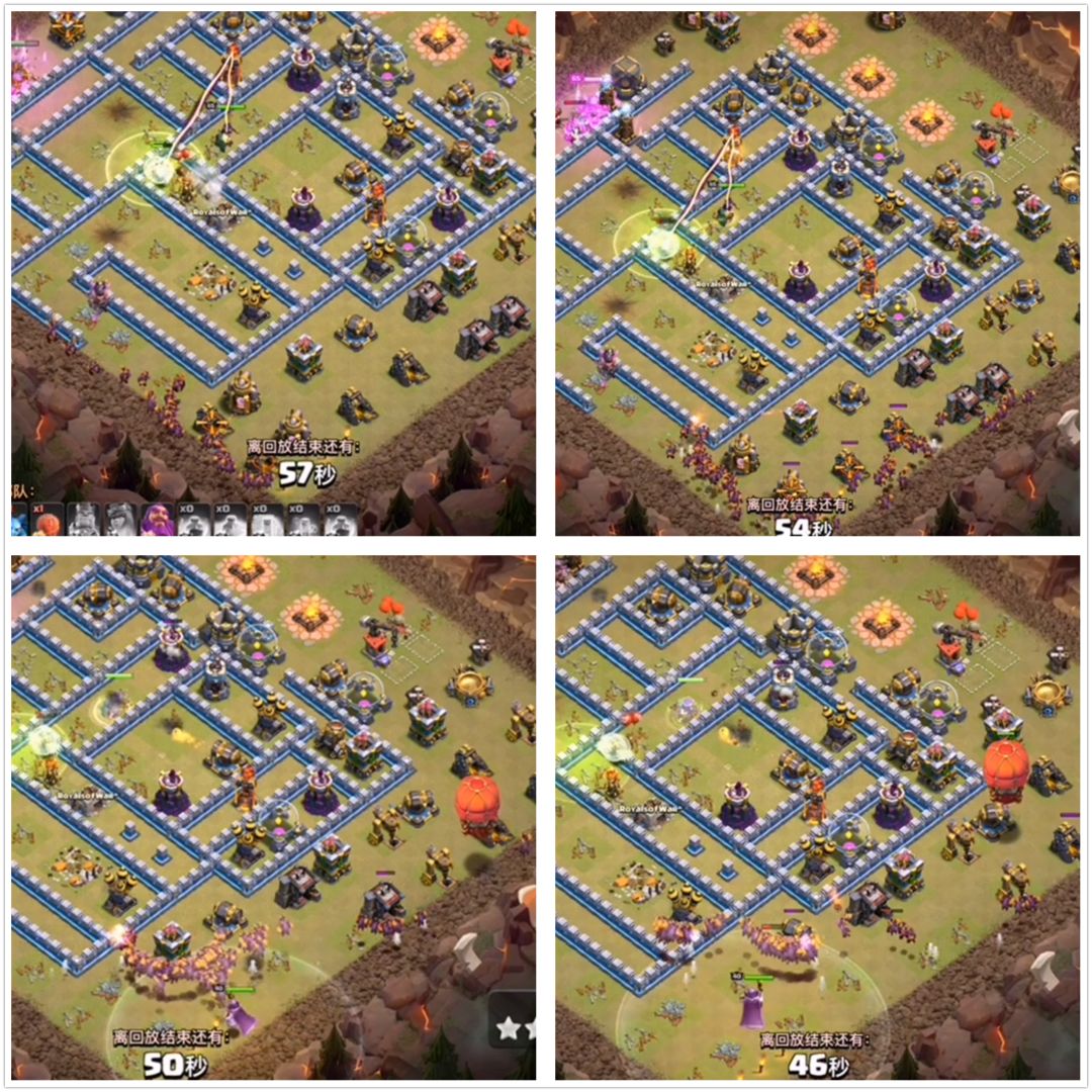 总结:天女苍蝇流虽然很秀,但是没有很深的天女功底和对阵型整体的理解是没法用这种打法的。因此各位首领选天女进攻时,要计算路线上是否存在黑炸,或者是否会被防空打到。并且要保证天女不可以走偏!这也就是为什么这场要从7点方向进攻的原因,最后,希望今天的教学能给各位首领扩宽一下思路!