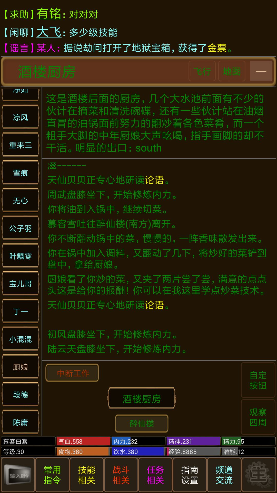 潜能没满,经验没满,去厨娘处炒菜没经验!没潜能!(厨娘已涉嫌违反劳动法) 朱熹抄书、打铁匠打铁都有潜能与经验!!!希望能尽快修复,不然就自由自杀这条路了………………