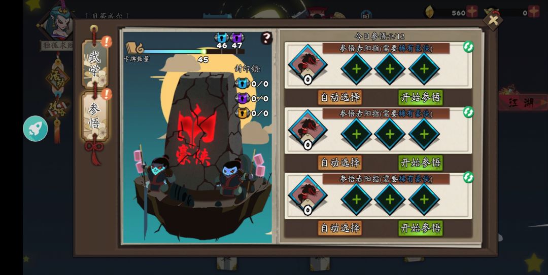 1我这个武学碎片已经够升3了,但没来急升,给我继续刷这个武学。吗的太慢解释了总之很恶心人就完了。希望检测一个武学碎片已经足够满级时就不刷这个武学了,全部满级时在随机出。或者我不参悟这个武学了隔天自动刷新武学。2武侠碎片购买有时候手一快就是50金叶,希望金叶购买能加个确定提示。