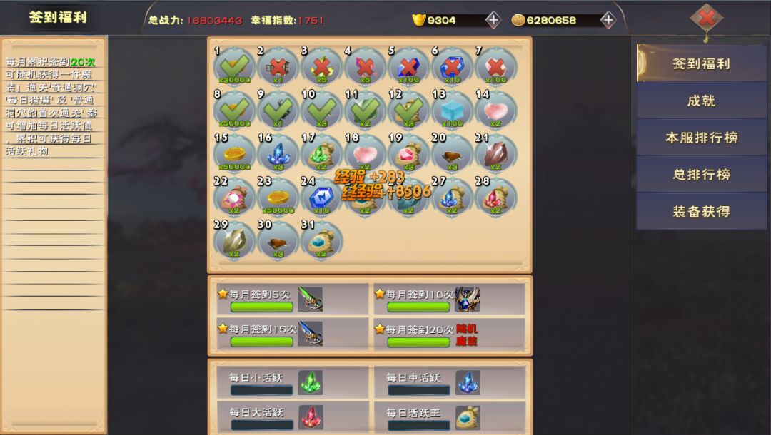 ,现在版本 增加了每日签到功能,累积签到20天就可以随机领取一件魔装 !