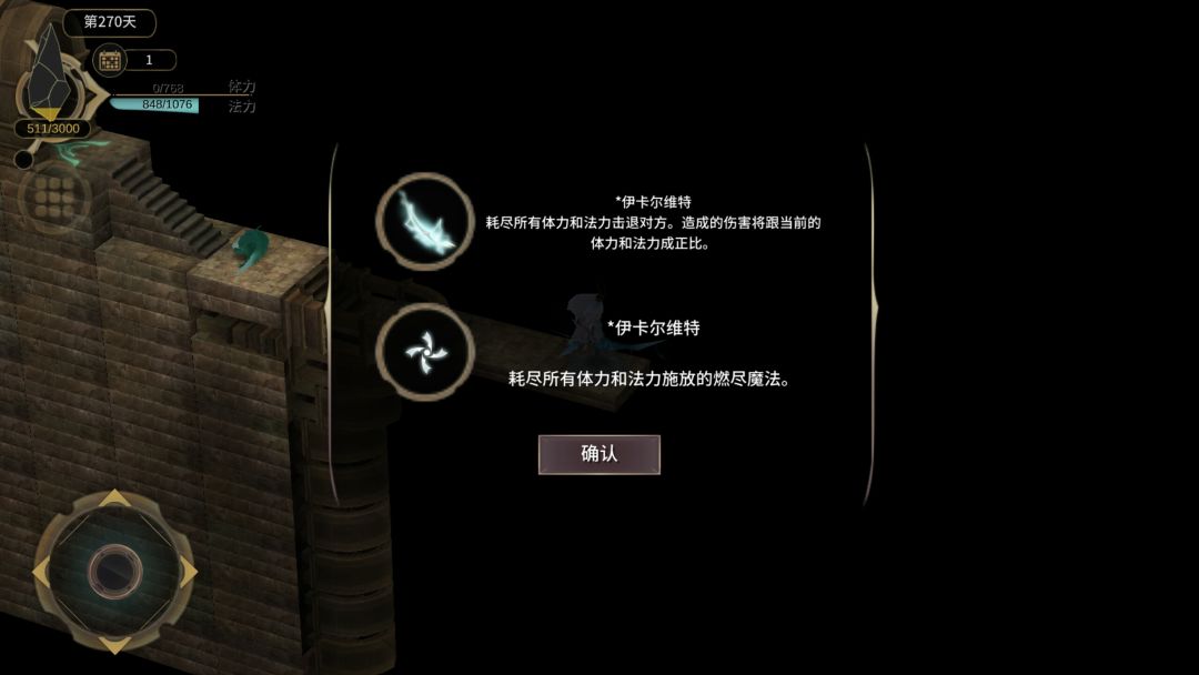 里边有个掉血考验,大概掉1000点,只要血+魔超过这个数就行,通过会得到大招。