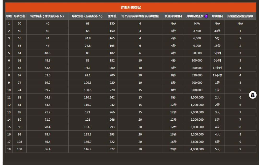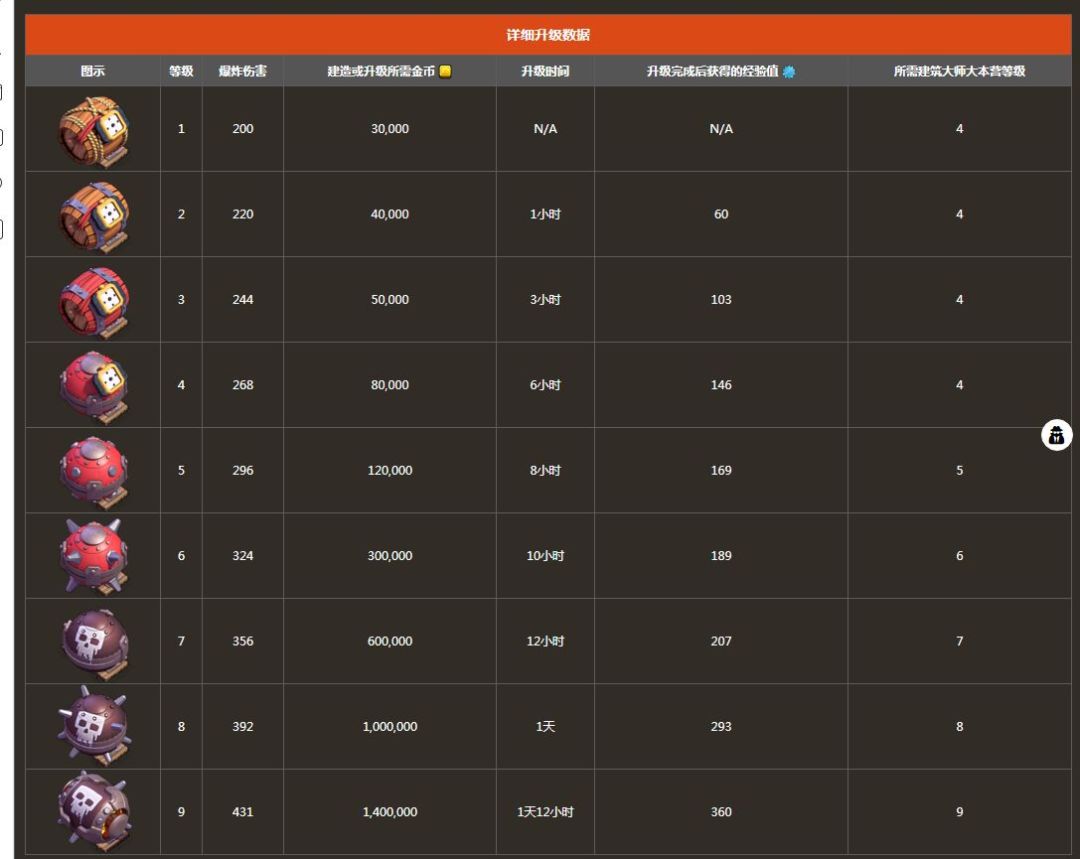 此为野蛮人数据(参考前十级即可,我们默认野蛮人等级为八级,弓箭手八级,炸弹人六级)非常不幸,一级巨型伤害就是八级野蛮人生命值1.第一种情况,石头在外边或者比较靠外