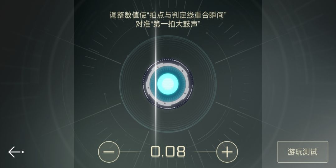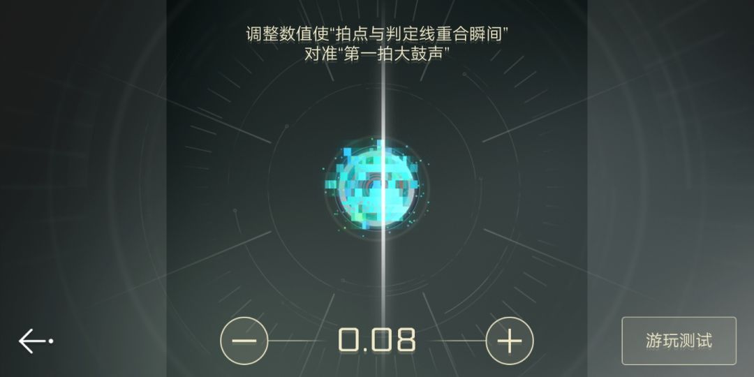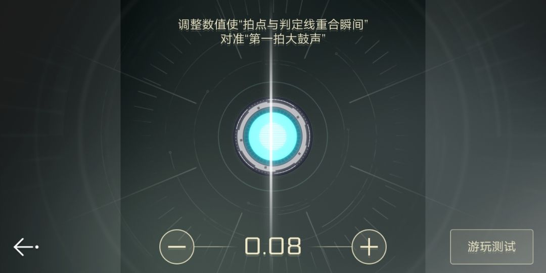 第二:线快扫到正中间时不要眨眼,一定要确保扫描线落在note的正中间,不然校准就没有意义了;当然,你不可能做到完美重合,初入游戏的萌新节奏感和稳定性也不够,不可能次次点到位,所以感觉已经尽可能得精确就够了不必太过苛求,毕竟还有±70ms的误差允许。