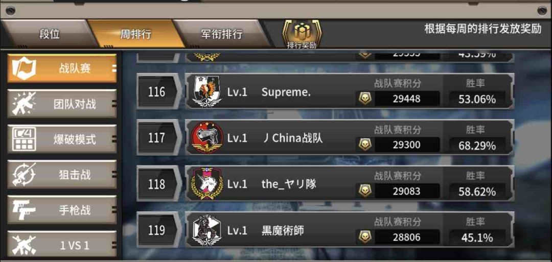 (5)战队赛上榜