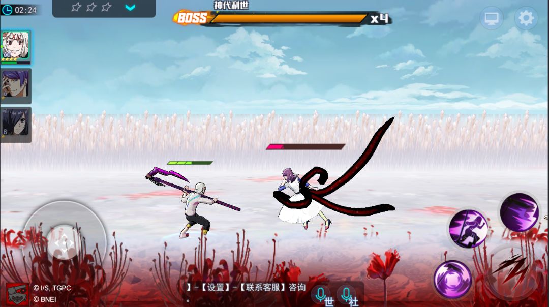 对于游戏中的打斗,角色释放技能和敌人受伤时的反应也是代入感十足,真实感受战斗的紧张氛围。玩家在与敌人打斗时,流畅的画面与绝妙的技能,搭配的相得益彰,为玩家还原了一个动感十足且“布满危险”和挑战的《东京喰种》 世界!