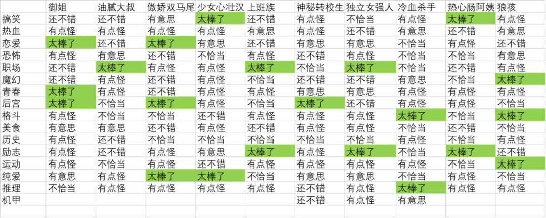太棒了>有意思>还不错>有点怪>不恰当
