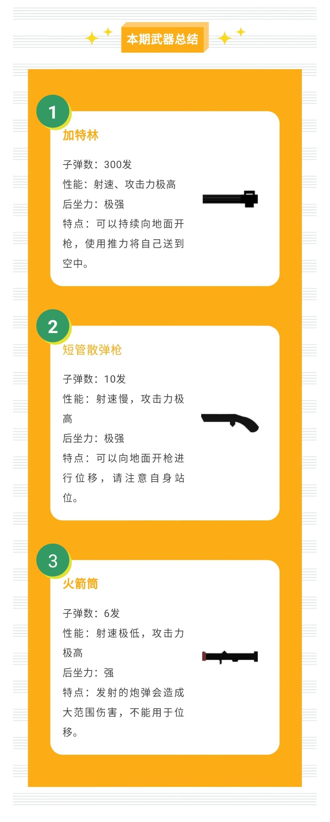 短管散弹枪虽然伤害非常可观,但它的后坐力甚至比加特林还要高!小黄友情提示:使用短管散弹枪的时候千万要注意站位,远离悬崖!或者选择背后有抵挡物时再开枪!不然就会发生“坠崖惨案”!