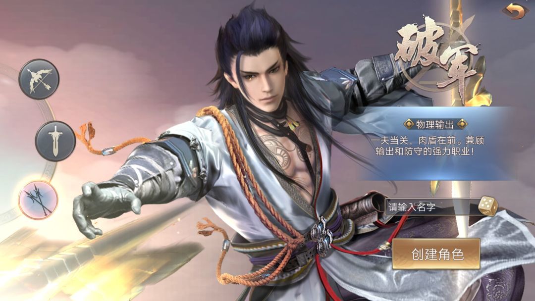 本游戏共有三大职业供大侠们挑选。分别为侠女穿云、玉树临风的青峰、霸气威武的破军。随后鄙人就为大家介绍介绍这三大职业。