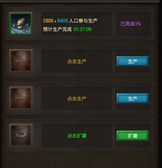 作坊开了之后建议直接开启第二条生产线——实话说,一条线生产绝对会出现铁匠铺长时间罢工的现象,一方面产量不足,另一方面种类不全。