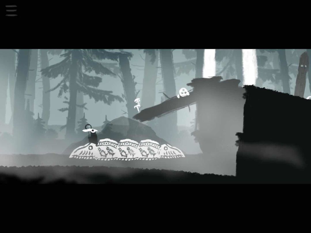到了存档点之后,熊就开始追你了,需要根据地形切换阴阳眼,快速通过森林逃脱追捕,跳下高崖可以在左边找到收藏品。