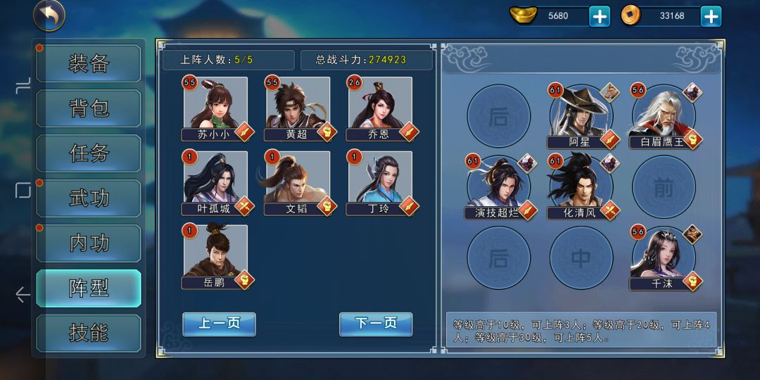 把通关的阵型分享出来,希望可以帮到正在肝这个boss的伙伴。我是剑主 武功只有主角学了A武(子午十二剑)其他都是B级相应门派的武功(心法都是B级的)。我卡在这个boss有几天了,本以为要阿星学完太岳才能过。