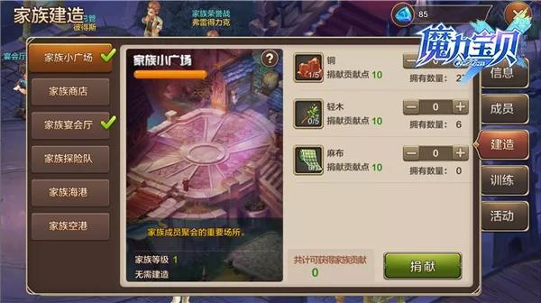 不过想要建造这些建筑,需要消耗不少的家族建筑点,想要获取家族建筑点,需要通过家族成员们捐献来获取哦!