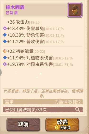 首先我们打造一批轻型盾牌橡木盾 之所以打造攻击力最低的轻型盾牌是因为中型和重型盾牌需要更多的升星点,而莉莉作为工具叽并不需要那么高的攻击,所以轻型最佳。