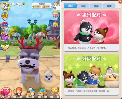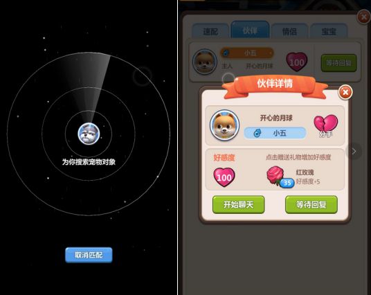 系统会自动匹配宠物,喜欢就确认培养感情,不喜欢就拒绝就好拉,喜欢确认,不喜欢拒绝,是不是有一种选美的FEEL,选中喜欢的宠物配对之后赠送玫瑰花培养好感度,当好感度100%的时候,就可以求婚拉,然后就进入漫长的等待过程了哦,等对方确认,你们就可以结婚拉。