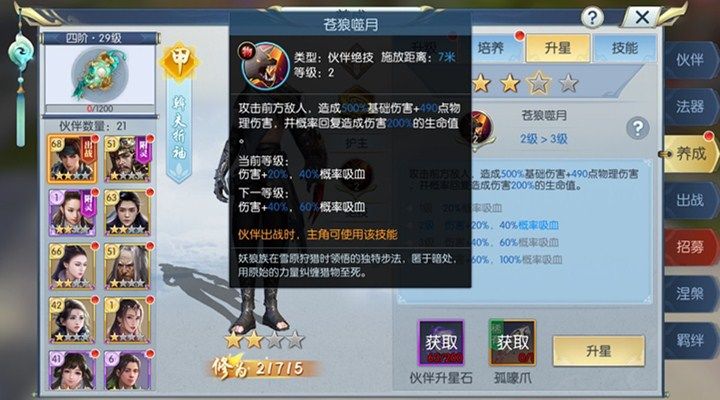 在择天记这一款游戏中,同伴是我们修行之路上的一大助力,在我们修为的提升上也有很大的帮助,不同的同伴他的属性技能都是不一样的,对玩家的属性加成也是有所区别的,我们可以通过同伴培养、同伴升星和给同伴学习技能来增强同伴的实力,其中同伴升星可以提升伙伴绝技的等级,伙伴升星是伙伴属性提升中性价比最高的一种方式。不同的伙伴升星后的效果也是不一样的,今天我们就一起来看一下同伴斡夫折袖升星后有什么效果吧。
