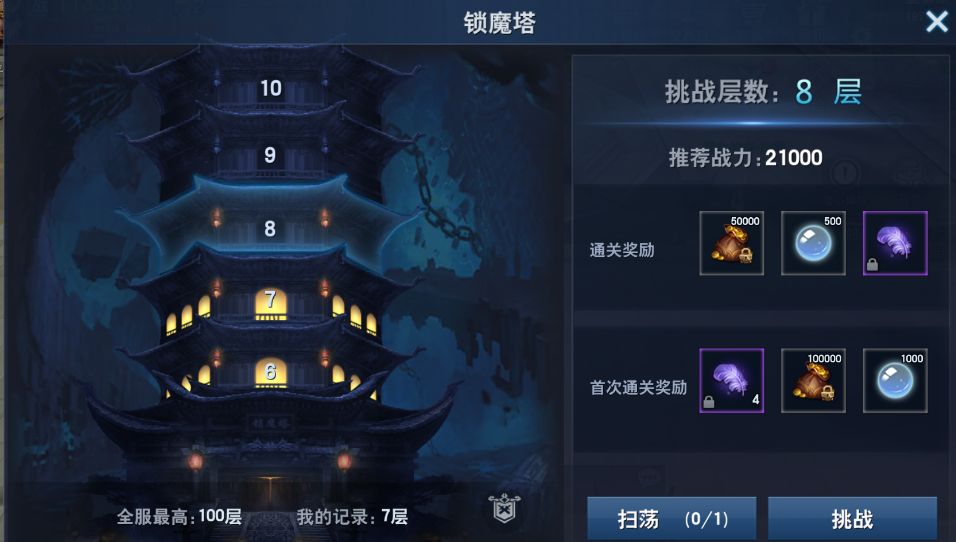 通关奖励:1.玩家通关首次通关当前层数时,会获得基础奖励和首次通关奖励