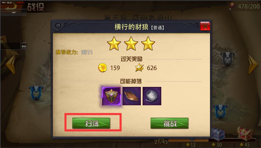 点击红框中的扫荡