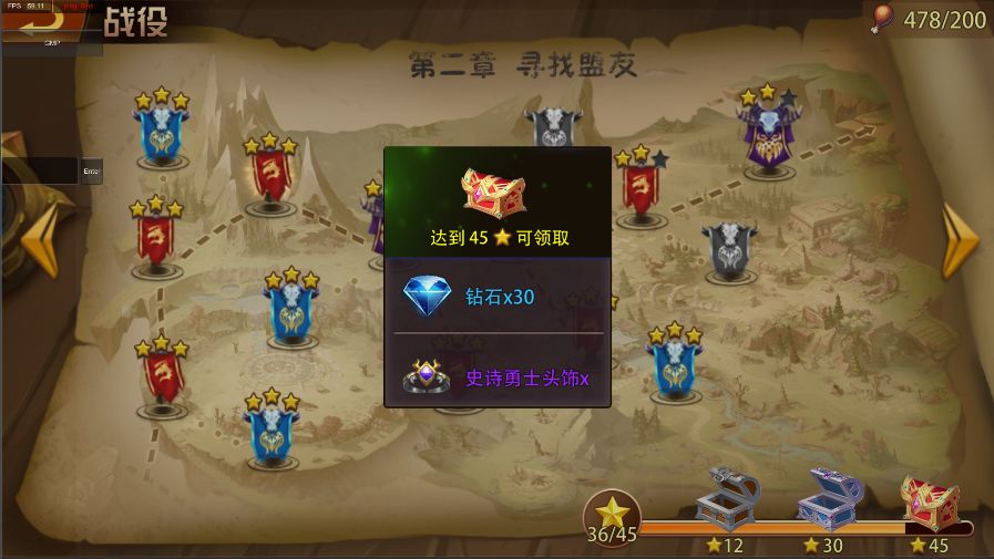 当一个章节的关卡达到指定的星星数量还会获得额外的奖励呢