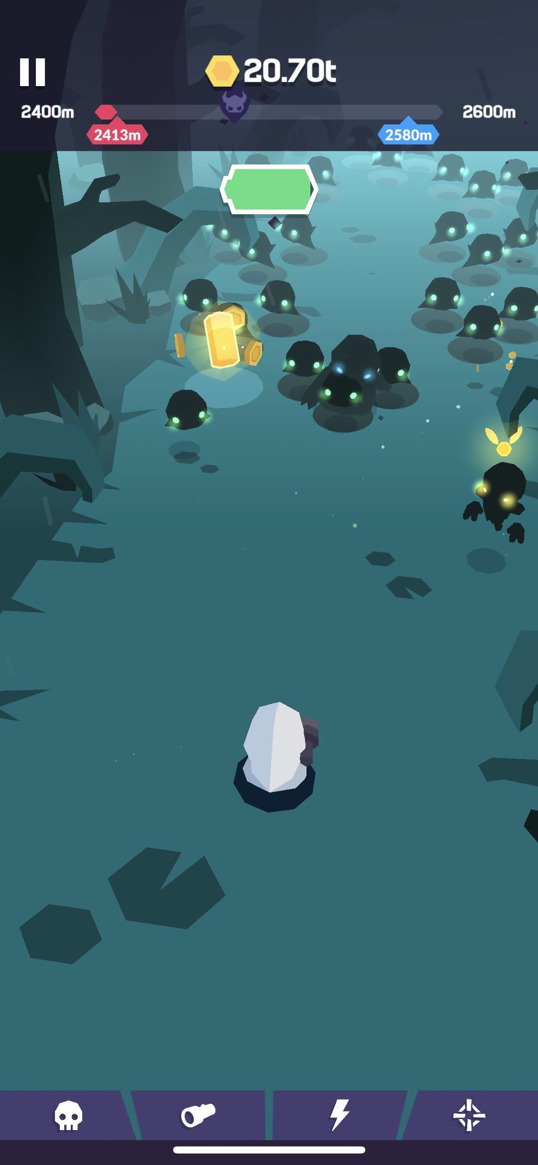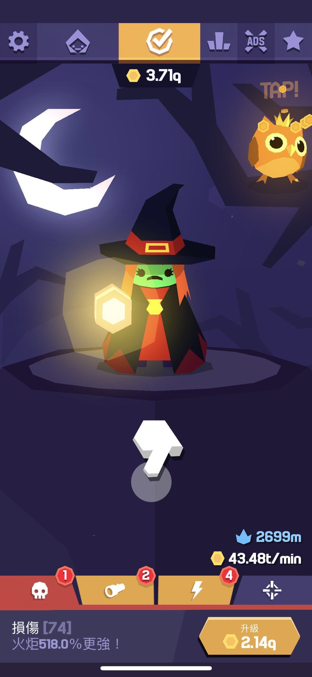 4、前进过程中收集金币(个人觉得文案修改为勇气值更有游戏代入感)用于升级手电筒伤害、照射长度、电池寿命以及照射暴击。