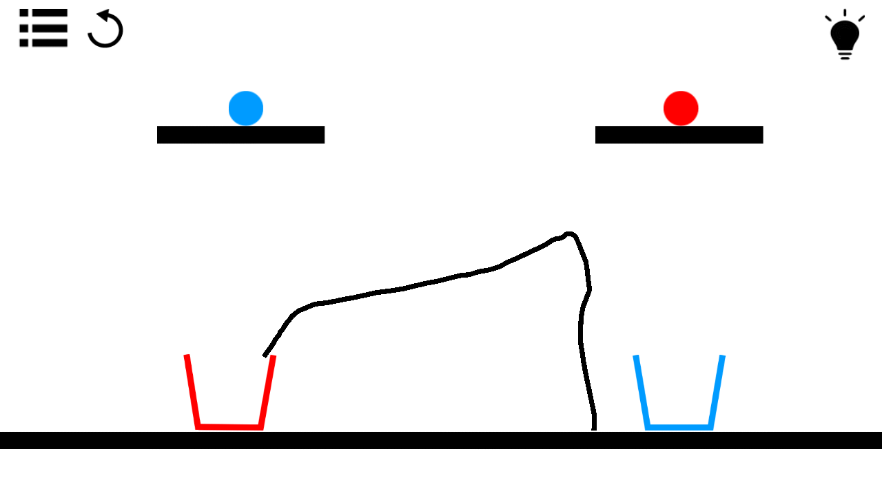 游戏目标就是画出你能想到的任意形状的线条,使小球进入相同颜色的杯子里面。