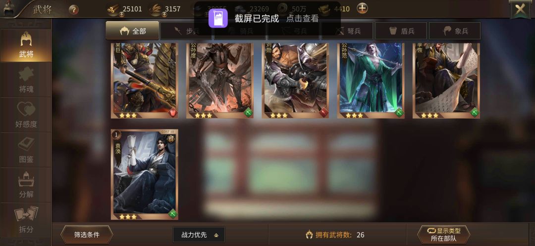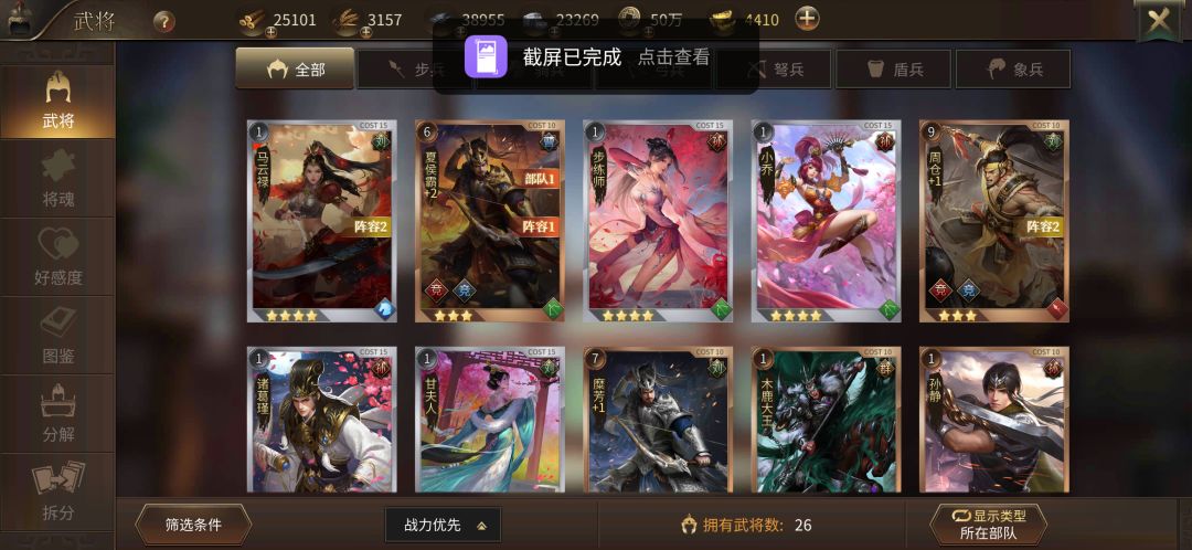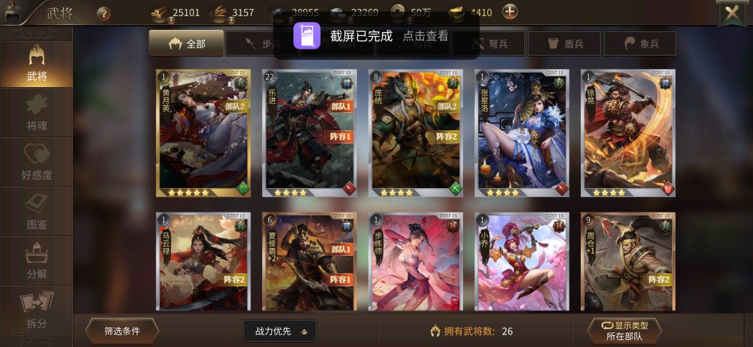 顺便说下,关银屏的战力最高,刚玩两天