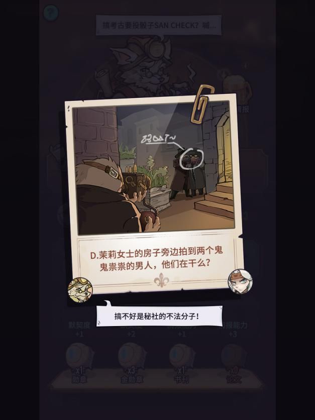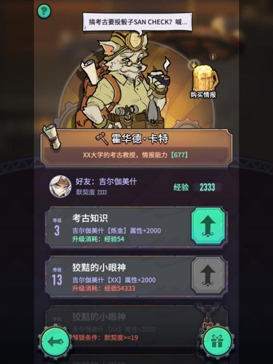 同时,事件可以为npc带来经验,并且提高npc和战魂的默契度。默契度越高,每次事件获得经验就会越高。npc的经验可以升级npc技能,技能可以增强战魂的属性。后勤专业度越高,在寻找情报、探险等事件中带回的情报潜在价值越高。